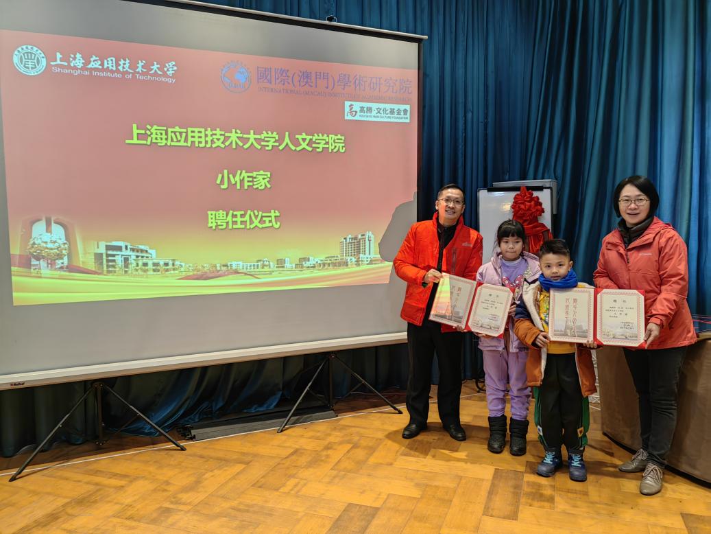 高結(左二)、高至型(左三)获聘为上海应用技术大学人文学院小作家。