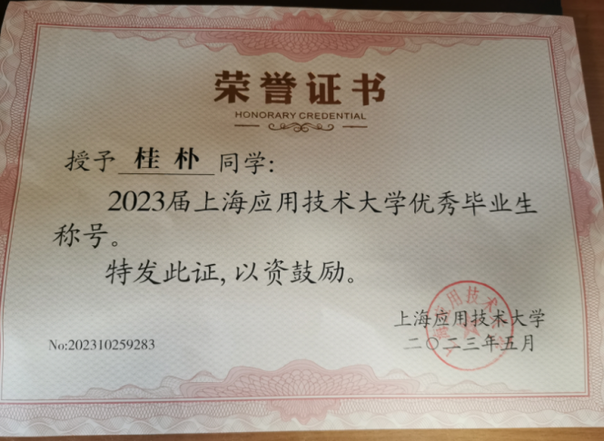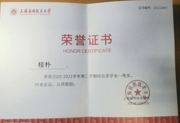桂朴,2001年生,安徽安庆人,上海应用技术大学人文学院2019级文化产业管理系学生,中共预备党员。桂朴同学热心公益,表现优秀,在校期间荣获: