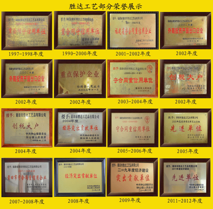 胜达工艺品有限公司勇于承担企业社会责任,热心公益事业,以“优质产品、诚信经营”作为经营理念,全力服务于中国国内的贸易公司,国外的采购商,国内的批发商,连续多年被评为优秀模范企业。