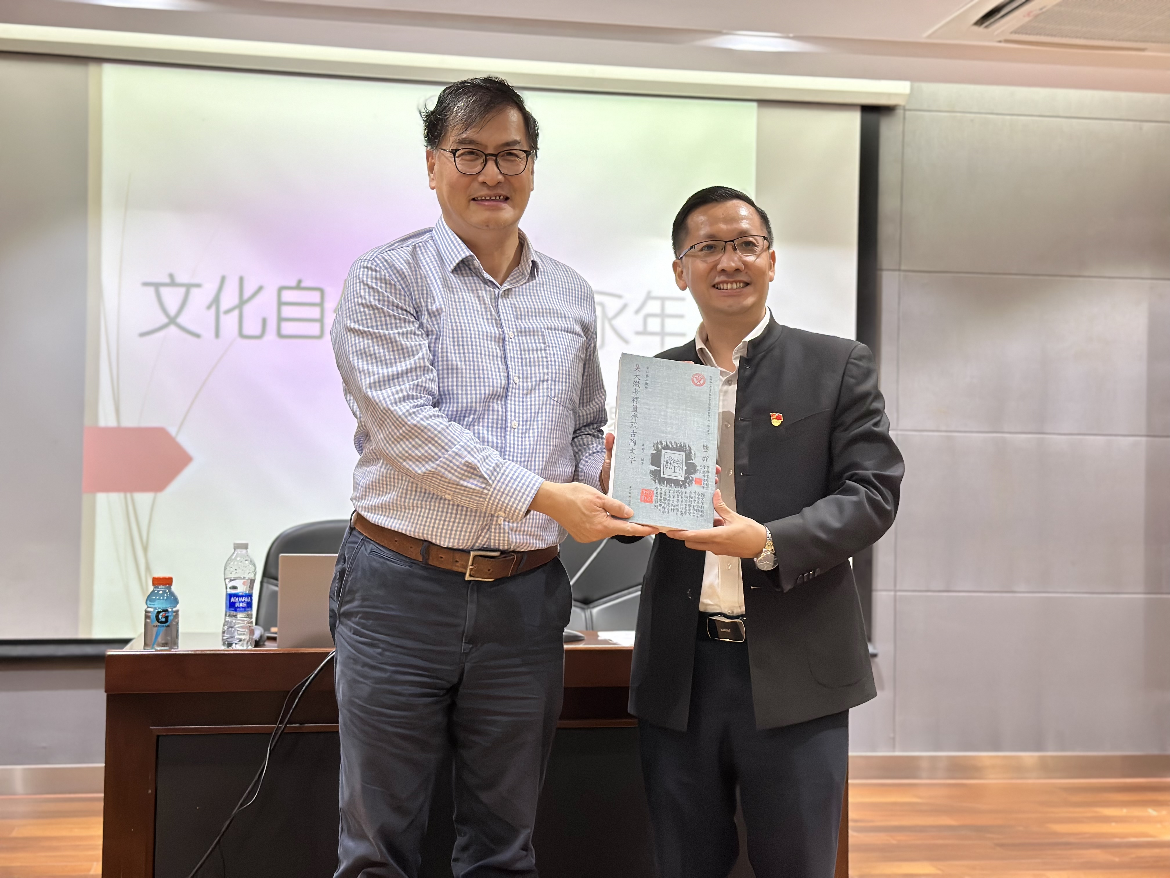 11月3日,西泠印社理事、上海书法家协会常务理事、上海书法家协会金石碑帖专业委员会主任、海上印社理事、中国书法家协会会员、上海应用技术大学人文学院退休副教授唐存才老师向学院全开放自助图书馆捐赠自己为国家图书馆编著的国家级文化工程最新成果《吴大澂考释陈介祺古陶文》,弥足珍贵。