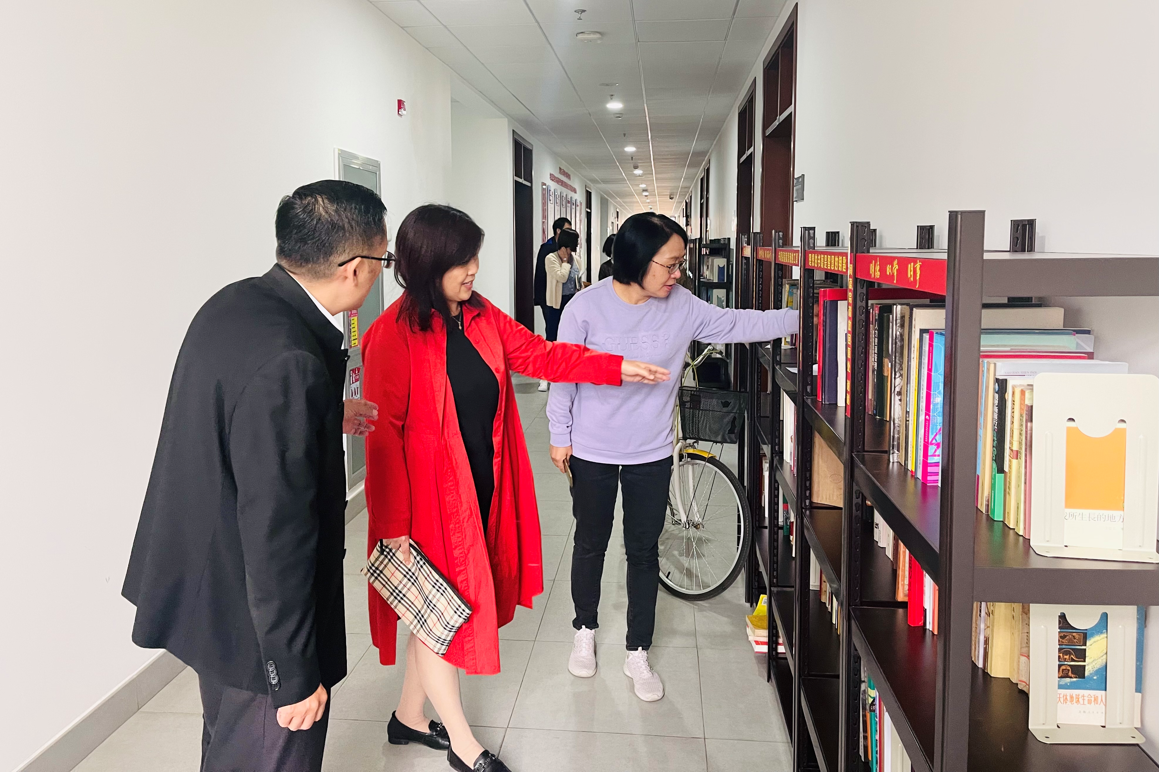 会后,院长张向前带领督导组一行,参观了学院的“我为群众办实事”的重点项目——全开放自助式图书馆,张院长详细介绍了全开放自助式图书馆建立的初衷及目前的建设情况,并感谢学校对学院全开放自助式图书馆的大力支持。