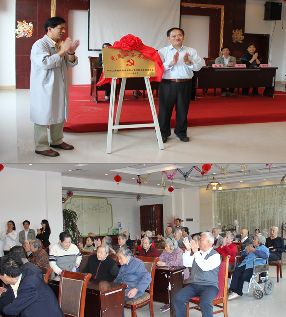 在喜迎党的十八大的欢庆日子里,为激发党员同学走进基层,运用所学知识服务社会,人文、思政学院党总支积极拓展资源,为学生党员搭建服务平台。10月26日,人文、思政学院党总支赴奉贤区兰公馆敬老院建立了党员服务基地。兰公馆养老院院长袁震、办公室主任陈琳琳;人文、思政学院党总支书记朱贵平老师、副书记副院长苗瑞凤老师、各年级支部书记、学生党员、积极分子出席了服务基地的揭牌仪式。