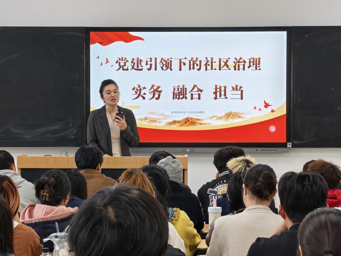 课上,同学们聚精会神、互动积极,纷纷表示这样的课堂“接地气、有温度、有深度”,让抽象的理论变得可知可感,也让同学们对基层工作有了更深的敬意。这种从“被动接受”到“主动共鸣”的转变,正是校社协同育人模式的生动体现。