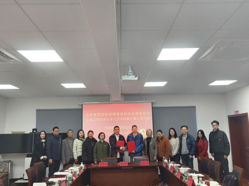 12月24日,人文学院党委与营房村党总支在柘林镇营房村党群服务站签订党建共建协议。人文学院党委书记周文,副院长周正柱,柘林镇党委副书记罗兰萍,营房村党总支书记王思源,党总支委员以及双方党员代表共同出席。