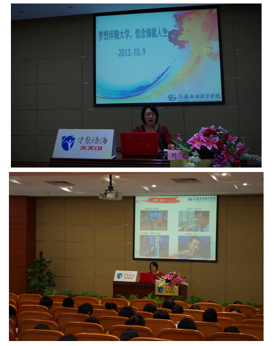 梦想是承载社会愿景的垂天之翼,也是激励人们奋斗的动力之源。周书记通过了一个个鲜活的例子向同学们讲述了古今中外名人的梦想:马丁路德金“人人生而平等”的民族梦想;孔子“修身、齐家、治国、平天下”的社会理想;孟子“德服天下”的治国理想……这一个个经典的伟人们的理想在她讲解中变得生动具体、可感可知。梦想可以关乎国家也可以关乎个人,周书记在讲座中还谈到普通人的梦想:如致力于公益事业的清华农民工张立勇,出生于偏远山区但用自己的努力浇筑梦想的豆本加。随后,周书记又着眼于世界,将中国梦与美国梦进行了对比,使同学们对梦想有了更加直观的理解。最后,周文书记鼓励大家要敢于做梦,用理想信念来撑起自己心中的梦,书写属于自己的精彩,用青春梦托起“中国梦”。