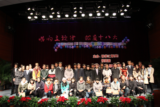 在全国掀起“欢庆十八大、学习十十八大”的热潮和2013年即将来临之际,人文学院于12月24日晚在图书馆B106室举办了以“唱响主旋律,欢庆十八大”为主题的新年诗歌朗诵暨“青春力量”优秀学生表彰大会。此次活动由校学工部、校团委主办,人文学院承办。校学工部部长、学生处处长熊焰,校教务处处长周小理,人文思政学院院长刘红军,副书记副院长苗瑞凤,副院长赵敬立,校团委副书记陈雷以及各二级学院的老师参加了晚会。
