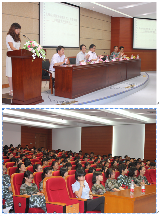 新生代表姜婷婷和09级学生代表相继上台发言。姜婷婷与大家分享了从高考到进入上海应用技术学院的感受。“明其志,方能明其所赴”,自己要成为什么样的人?要如何过好自己的四年大学生涯?将会是萦绕在她脑海,启迪她成长的问题所在。09级学生代表蒋鑫结合自身经历,从衣食住行,到学业再到社会实践、生涯规划,为新生朋友们提供了宝贵的经验。