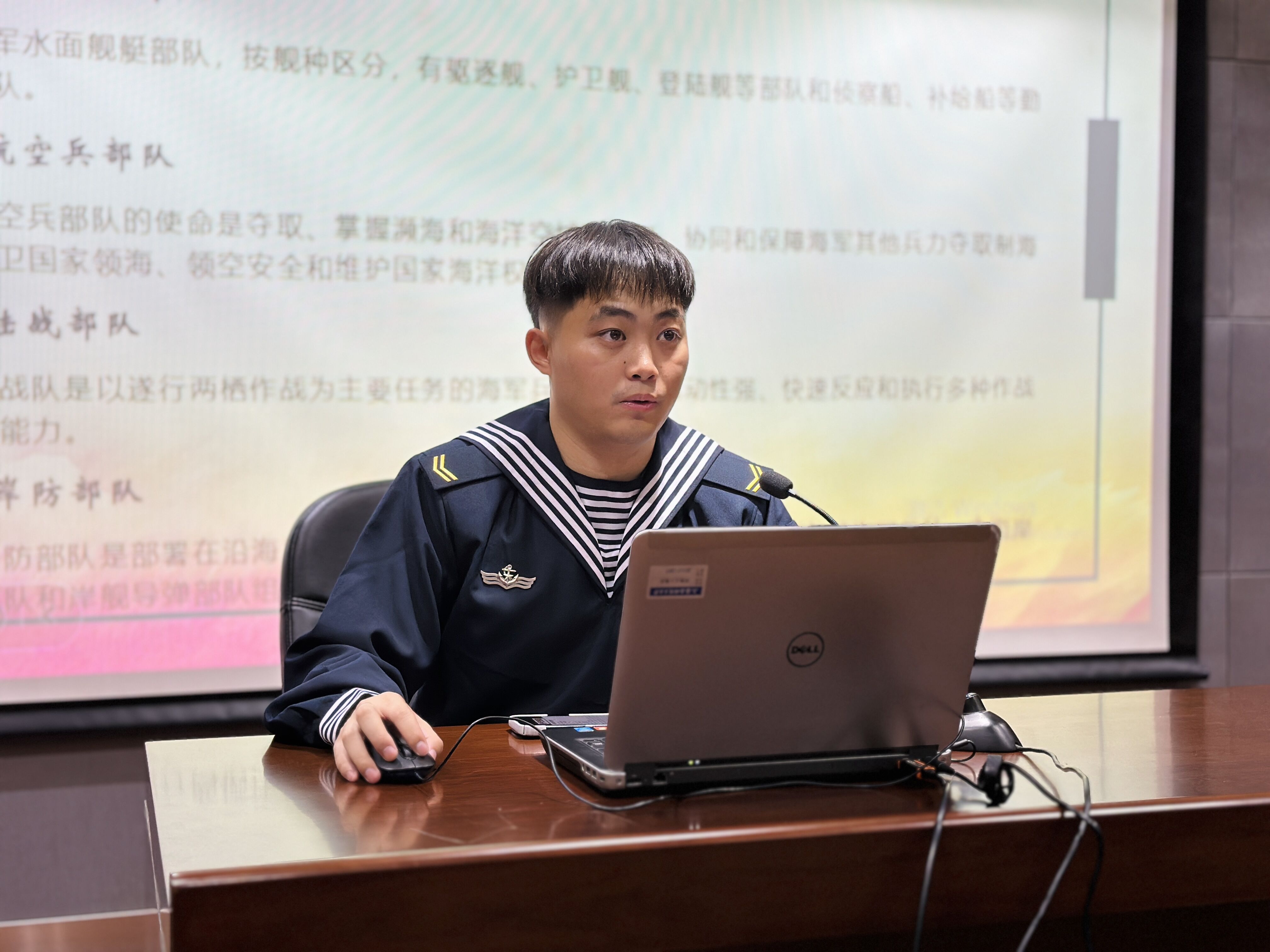 接着,曾服役于中国人民解放军海军舟山某综合保障基地的战士沈昱用他入伍后的成长经历诠释了当兵是一场热血的征程,让原本稚嫩的他蜕变成了坚韧不拔的军人,鼓励同学们勇敢地到军营中追逐梦想,到百炼成钢的熔炉中磨砺青春。