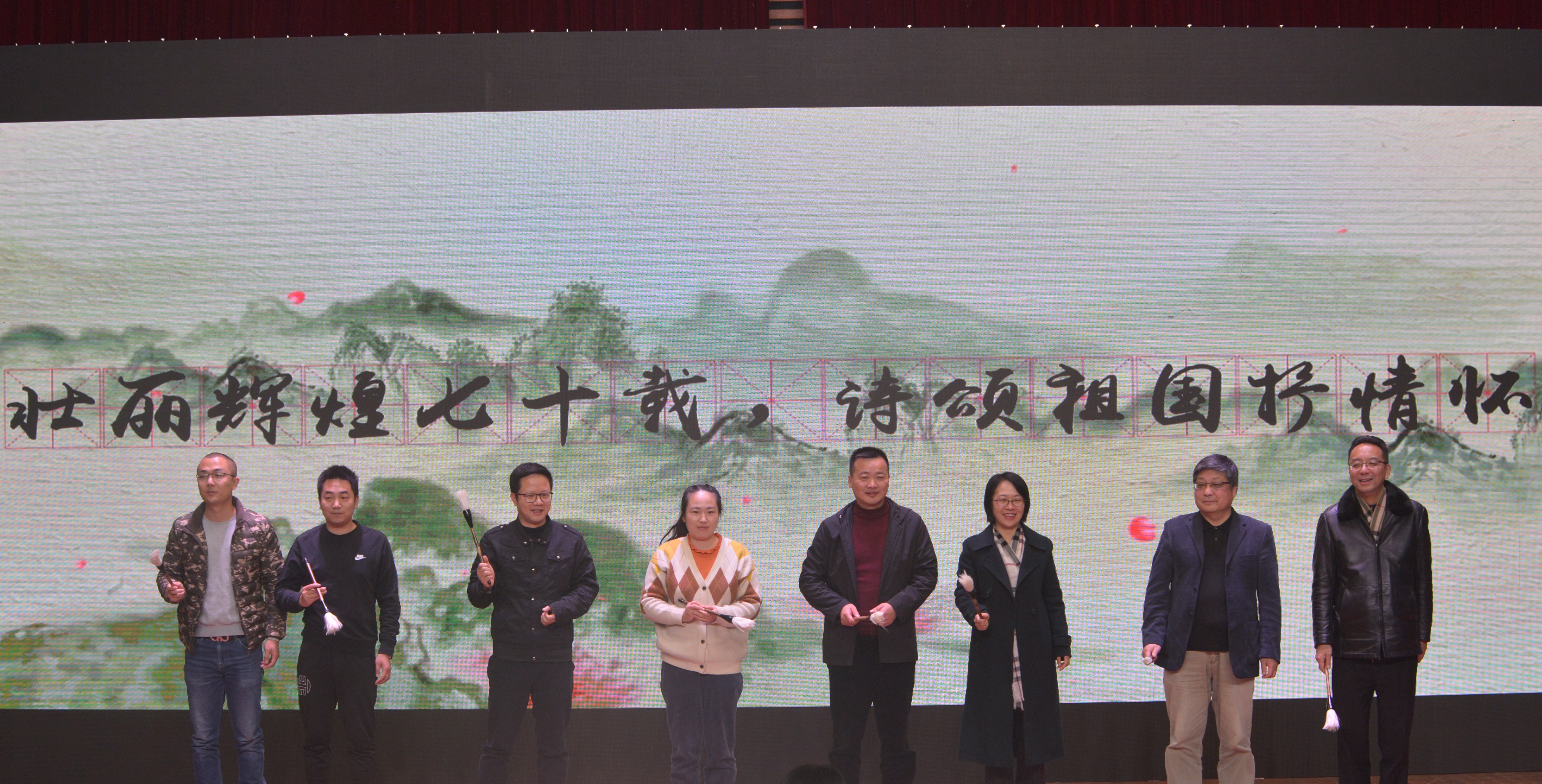 12月3日晚18:00,由上海应用技术大学校学工部(处)主办,人文学院承办的“壮丽辉煌七十载,诗颂祖国抒情怀”上海应用技术大学第三届诗词文化节开幕式暨第十一届经典诗词朗诵晚会在大活小礼堂隆重举行。出席此次晚会的嘉宾有校党委学工部部长、学生处处长袁翔,国际交流处处长邓维,人文学院党总支书记周文,人文学院院长刘红军,海湾旅游区党建联建的社区书记们,特邀嘉宾有著名诗人于军乐先生,著名诗人、上海滩诗会会长、以诗会友文化传播公司董事长李芳女士。各二级学院教师代表以及各二级学院学生代表共计400余名参与本次晚会。