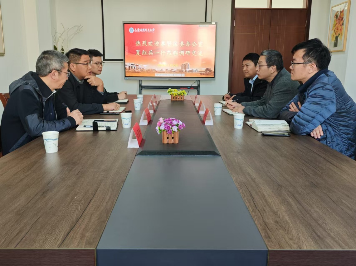 11月28日,奉贤区委办公室夏红兵一行来人文学院调研交流区校联动服务地方经济,人文学院院长李正东、保卫处副处长卫聚金热情接待,双方进行座谈交流。